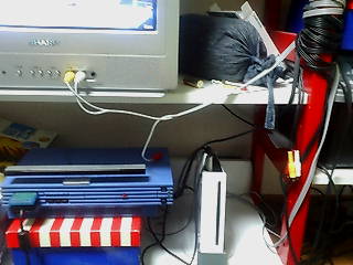 WiiのセンサーバーをPS2の上に乗っけて高さ調節とかw